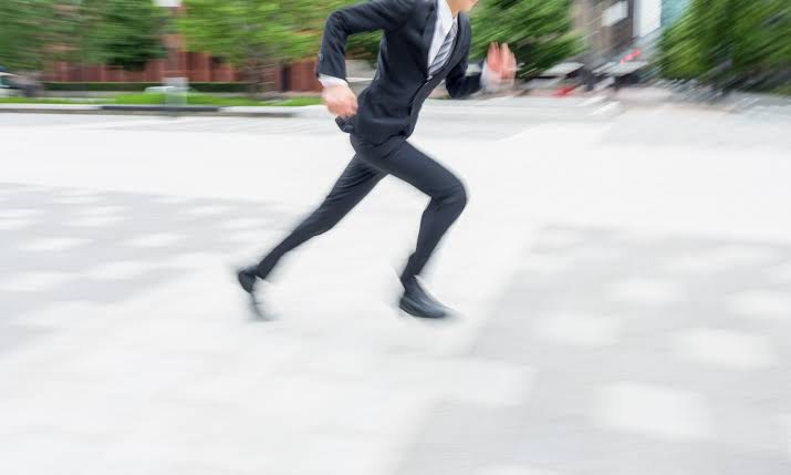 y que el joven estaba corriendo tratando de llegar a tiempo.