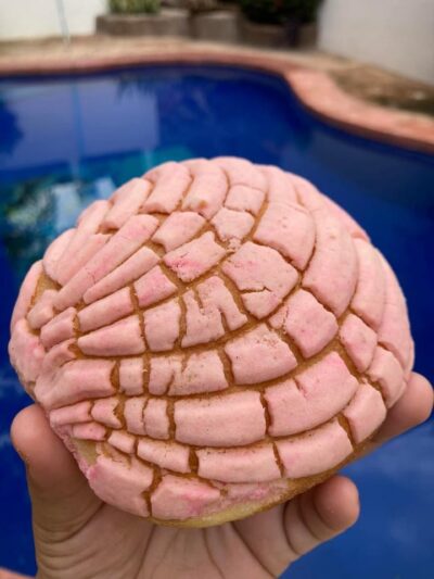 Toma un poco de la masa de la costra de aproximadamente 15 gramos y con ayuda de un rodillo aplana hasta obtener un diámetro igual al de la concha.