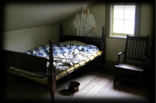 Cuando el sacerdote llegó a la habitación del enfermo, encontró a José en su cama con la cabeza apoyada sobre un par de almohadas. Había una silla junto a su cama. El sacerdote pensó que el hombre esperaba alguna visita.