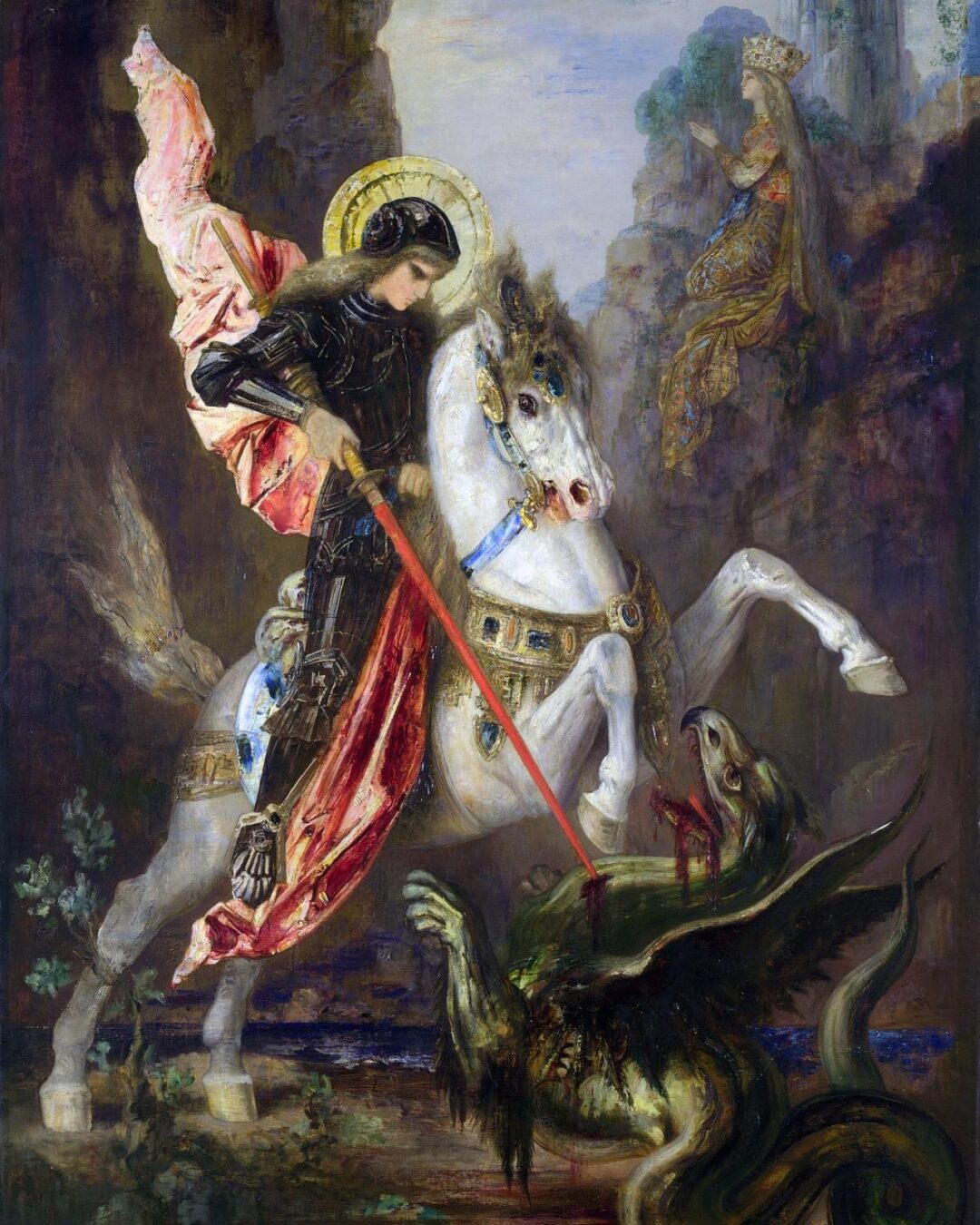 Gustave Moreau – “San Jorge y el dragón” (1889-1890, óleo sobre lienzo, 141 x 96 cm, National Gallery, Londres)
