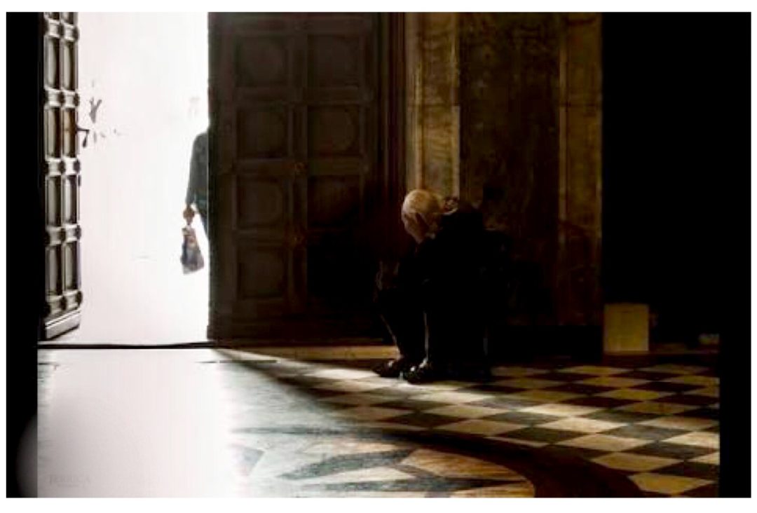 Un sacerdote daba su recorrido por la iglesia al mediodía, cuando, al pasar por el Altar decidió acercarse para ver quién había venido a rezar. En ese momento se abrió la puerta, el sacerdote frunció el ceño al ver a un hombre acercándose. Estaba sin afeitar, vestía una camisa rasgada y su abrigo era viejo y deshilachado. El hombre se arrodilló, inclinó la cabeza, luego se levantó y se fue.